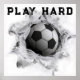 Creative soccer poster featuring flying kick-pass soccer ball design and motivational line.