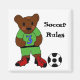 A great fun design for soccer players. Teddy bear in green soccer jersey and shorts, red cleats and ready to kick that soccer ball.