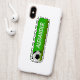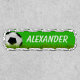 Custom football themed school name patch featuring a green background, grass, a ball, and your kids name.