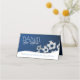 Multi soccer balls, soccer sports theme custom bar mitzvah seating tent card in dark blue to compliment our invitations.