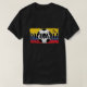 Soccer shirt with Colombia in vintage distressed text, and deconstructed soccer ball and Colombian flag in background.