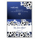 Blue multi soccer ball design DIY seating card with text that you can change and order individually.