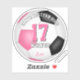 This team colors soccer sticker features the realistic image of a soccer ball that has pink, black and white panels - customize the player's name, jersey number, team name and mascot name - by katz_d_zynes