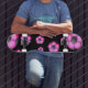 Sporty football illustration with lots of pink balls forming a soccer background design. Image available on various gifts and products.
