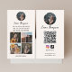 Business card features qr code and social media icons.