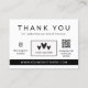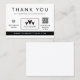 Chic insert card for your product packaging. Thank you for you purchase in a clean design with black fonts and a white background. Small business thank you card personalized with logo, social media, QR code, and website. Fully customizable small business thank you card.