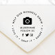Simple stylish custom "Love it snap it share it" to "Help our business grow" design in modern minimalist typography. The design features social media icons for facebook, twitter and instagram and a cute camera with red heart icon. The text can easily be personalized including your social media username and 'follow us' text. The perfect template for your small business to encourage customers to promote you on social media!