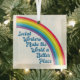 Social workers make the world a better place. Motivational social work gift with a beautiful inspirational quote under a cute rainbow in a blue sky. Pretty social services Christmas ornament.