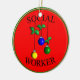 Social Worker Christmas Ornament, red and green with dangling christmas bulbs, "social worker".