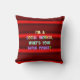 Social worker humor, pastel text on dark red stripes background, throw pillow.