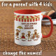 This is a mug for the parent who has four children. There are other similar mugs in the collection for parents with 2 or 3 (or more!) If you have a special request for the designer, please message Jaimie directly through the shop.