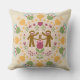 Sock Monkey Lovers in a Folk Garden Throw Pillow