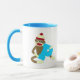 Here's a fun Sock Monkey design complete with customized initial - P! This blue letter would make a perfect monogrammed gift for all ages.