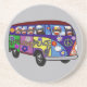 Hippie sock monkeys riding in their joy-peace-love van