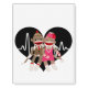 So cute sock monkey couple on a black heart, heartbeat