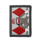 A simple nylon wallet that seems very durable. The design on front (Reiki) is very special. The red color of the wallet is attractive. Very satisfied with the print.