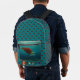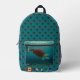 On the pocket: A male sockeye salmon, underwater, hovers over a rocky stream bed with the red coloration, humped back and hooked snout characteristic of spawning. Customize by adding your own text. The sockeye image is tiled on the rest of the pack.