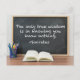 The only true wisdom is in knowing you know nothing. This insightful Socrates philosophy quote is perfect for a moral philosopher on graduation day. Education is never finished, because we learn from our experiences as we move through life. Inspirational and poignant postcard with a quotation about knowledge and learning.