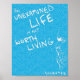 This blue poster features the philosophy famous quote from Socrates: "The unexamined life is not worth living". Customize the size and background colour to suit your decor needs!