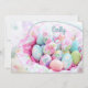 Beautiful Easter wishes and soft colorful pastel Easter eggs in a basket. Personalize with any names or your text.