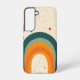 A simple rainbow arch in burnt orange and teal hues set against a cream background, delivering clean and calm retro vibes.