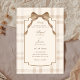 Soft beige brown bow tartan plaid wedding invitation