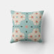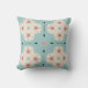 Bring gentle charm and a fresh, modern feel to your space with this floral throw pillow featuring a soft, symmetrical bloom design. With its stylized ivory petals, coral accents, and soothing aqua background, this cushion is perfect for adding a touch of elegance and color to sofas, chairs, or beds.