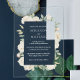Elegant botanical wedding invitation with a frame of pristine white and ivory roses and gentle leaves over acrylic transparent background and your names and all those special wedding details written in a classy white font. Card. Whether you're planning a summer chic celebration or a romantic spring affair, this invitation sets the perfect tone for your special day..