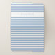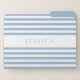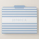 Set of office file folders featuring a minimalist soft blue and white striped pattern design and personalized text print on the front. Personalize them with your name or purpose you like to use them for. Check out the full collection above for matching blue striped stationery and more color options.