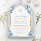 Soft Blue Floral Gold Arch Butterfly Wedding Invitation