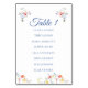 A delicate seating chart card featuring soft blue typography paired with blue and yellow floral accents. Designed with a clear numeric table layout, this piece feels elegant, airy, and timeless—perfect for weddings that lean classic with a fresh botanical touch.