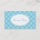 A pretty blue gingham pattern decorates this professional business card. Customize this business card to suit your needs. Use this business card for a small business, bakery, candy store, sweet shop, chocolates, gourmet foods. ice cream shop, caterer, inn, bed and breakfast, daycare, stylist, hair salon, cosmetologist, florist, fashion, alterations, maid, house cleaning, crafts, appointments, etc....The design is from original art.