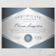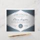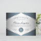 Soft blue metallic silver professional certificate of appreciation award includes shiny silver and blue medal.