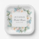 SOFT BLUE PINK BLOOMING FLOWERS BRIDAL MONOGRAM PAPER PLATES