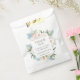 Elegant flowers, leaves, in soft watercolor palette of blue, white pink and green with orange accents adorn this romantic and elegant WEDDING FAVOR BAG WITH THANK YOU MESSAGE AND BRIDE AND GROOM'S NAME AND WEDDING DATE.