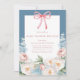 Soft Blue Pink Floral Bow Baby Shower Brunch Invitation