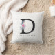 SOFT BLUSH BLUE FLORAL ALPHABETS NAME LETTER D THROW PILLOW
