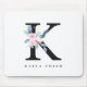 SOFT BLUSH BLUE FLORAL ALPHABETS NAME LETTER K MOUSE PAD