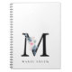 SOFT BLUSH BLUE FLORAL ALPHABETS NAME LETTER M NOTEBOOK