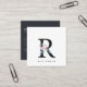 SOFT BLUSH BLUE FLORAL ALPHABETS NAME LETTER R SQUARE BUSINESS CARD