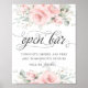 Soft Blush Floral Greenery Wedding Open Bar Drinks Poster