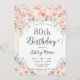 Soft Blush Floral Roses Greenery 80th Birthday Invitation