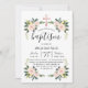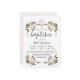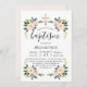 This stylish and chic Baptism invitation features delicate watercolor floral arrangements and a blush pink cross with the appearance of a textured effect, all with a modern typographic layout.