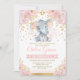 Soft Blush Gold Elephant 1st Birthday Chic Floral Invitation