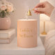 Feminine minimalist design in a soft blush tone, accented by a thin vertical gold line and gold serif lettering. The clean, balanced layout suits bedside tables, open shelving, or styled living areas where neutral palettes and subtle metallic detail support everyday rituals.