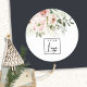Soft Blush Pink Peony Leafy Botanical Floral Logo Classic Round Sticker