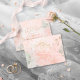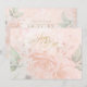 A soft floral of roses in blush pink and sage green is the focal point for many of the pieces of this wedding suite that also features elegant script text and modern design layouts. The wedding 'Save the Date' card shown here has lush rose borders and beautiful calligraphy and serif text in gold. Easily enter your wedding details using the provided template. View the collection link on this page to see all of the matching items in this beautiful design or search ID828 to see additional color choices for this design.