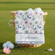 Elevate your golf gear with this charming botanical golf towel, featuring delicate watercolor butterflies and wildflowers in soft pastel hues. It's the perfect accessory for the avid lady golfer who appreciates both style and functionality on the course. Personalize it with a name to create a thoughtful and unique gift for birthdays, Mother's Day, or any special occasion. This towel adds a touch of elegant whimsy to every swing.