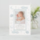 Welcome your little one to the world with a design that feels peaceful, dreamy, and beautifully serene. This soft blue watercolor celestial birth announcement features gentle washes of sky-inspired tones paired with subtle celestial accents, creating a calming backdrop for your baby’s most precious details.