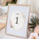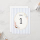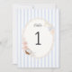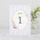 Celebrate the bride-to-be with our Soft Coastal Bridal Shower table number card, where the serene beauty of the ocean meets vintage elegance. This exquisitely designed table number captures the essence of a beachside gathering, perfect for honoring the upcoming nuptials in style. The card features a soothing backdrop of soft blue stripes, reminiscent of gentle ocean waves lapping against the shore. This tranquil pattern sets a calming tone, inviting guests to a serene coastal celebration.